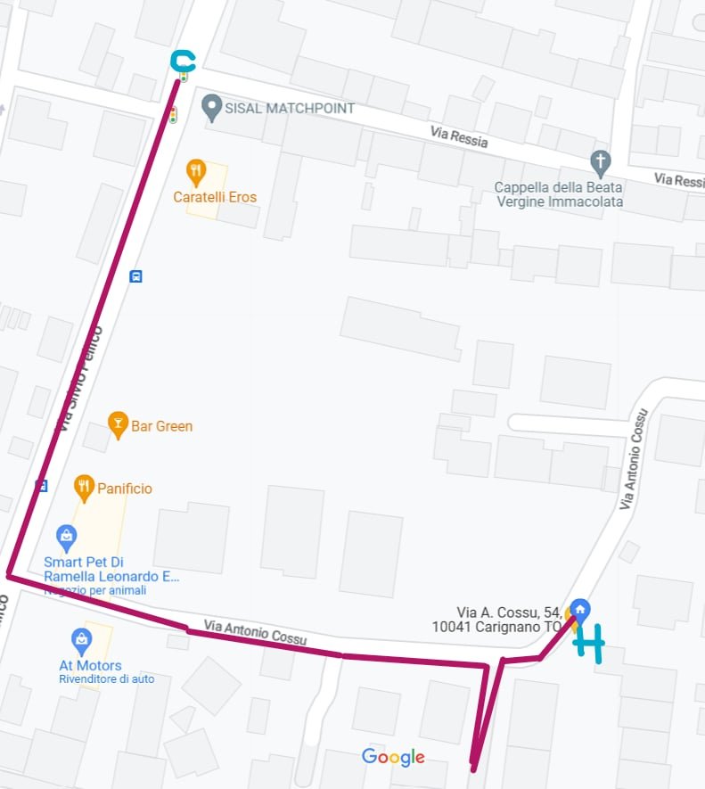 le coordinate di posizionamento del cabinet di appartenenza sono corrette e il tragitto è il seguente: