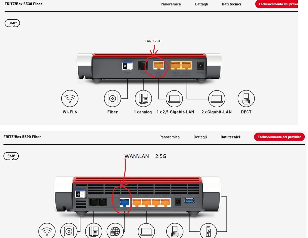 OpenFritz Trova le differenze (dal sito Fritz) Nel 5530 manca la parte WAN a 2.5, è per quello che dall'interfaccia web non ti fa mettere più di 1000