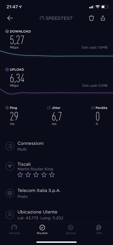 Cosimo Non saprei dirti, però il fatto che succeda solo la sera, e solo con tiscali , mi fa presupporre che non ho la vula. Visto che al momento ho allacciato un altro operatore, che non da sto tipo di problematiche. E nulla volevo avvisarti, visto che lo avevi chiesto.