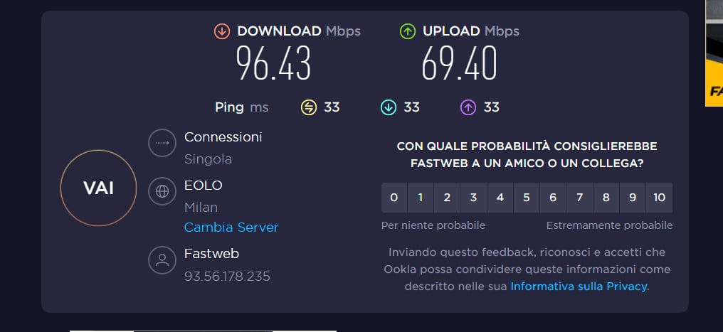 handymenny advapi intendi 70 Megabyte/s o 70 Megabit/s? uno speedtest selezionando manualmente il server fastweb milano o w3 milano che velocità ti dà?
