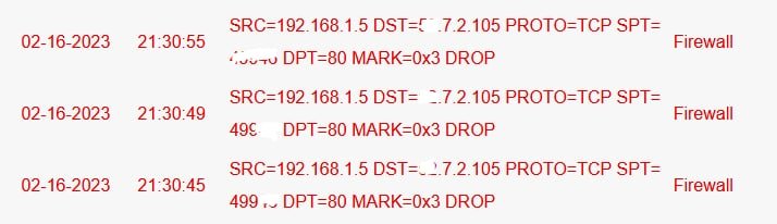 - Firewall: questo non so proprio a cosa si possa riferire. A quell'ora c'era collegata in WiFi solo la smart tv e la Fire Stick, l'indirizzo IP dovrebbe essere proprio di quest'ultima. In quel momento però nessuno la stava usando e quindi non ci siamo accorti di eventuali problemi. Cancello alcuni numeri che non so a cosa si riferiscono, ma sono sempre gli stessi per ogni evento.
