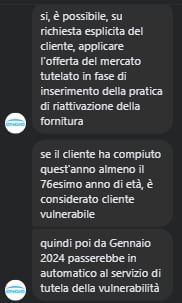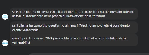 Andrea786 iHero96 La mia domanda era solo sulla fattibilità tecnica; engie che fa mercato tutelato da me mi ha detto che non può aprire un nuovo contratto sul tutelato, volevo capire se si trattava di svogliatezza, implicito suggerimento di andare direttamente sul libero o effettiva impossibilità. se tra un tot di mesi hanno in mese di far finire il mercato tutelato nessun operatore ti apre un nuovo contratto in tutelato se sa già a priori che finirà come mercato nel breve periodo ..