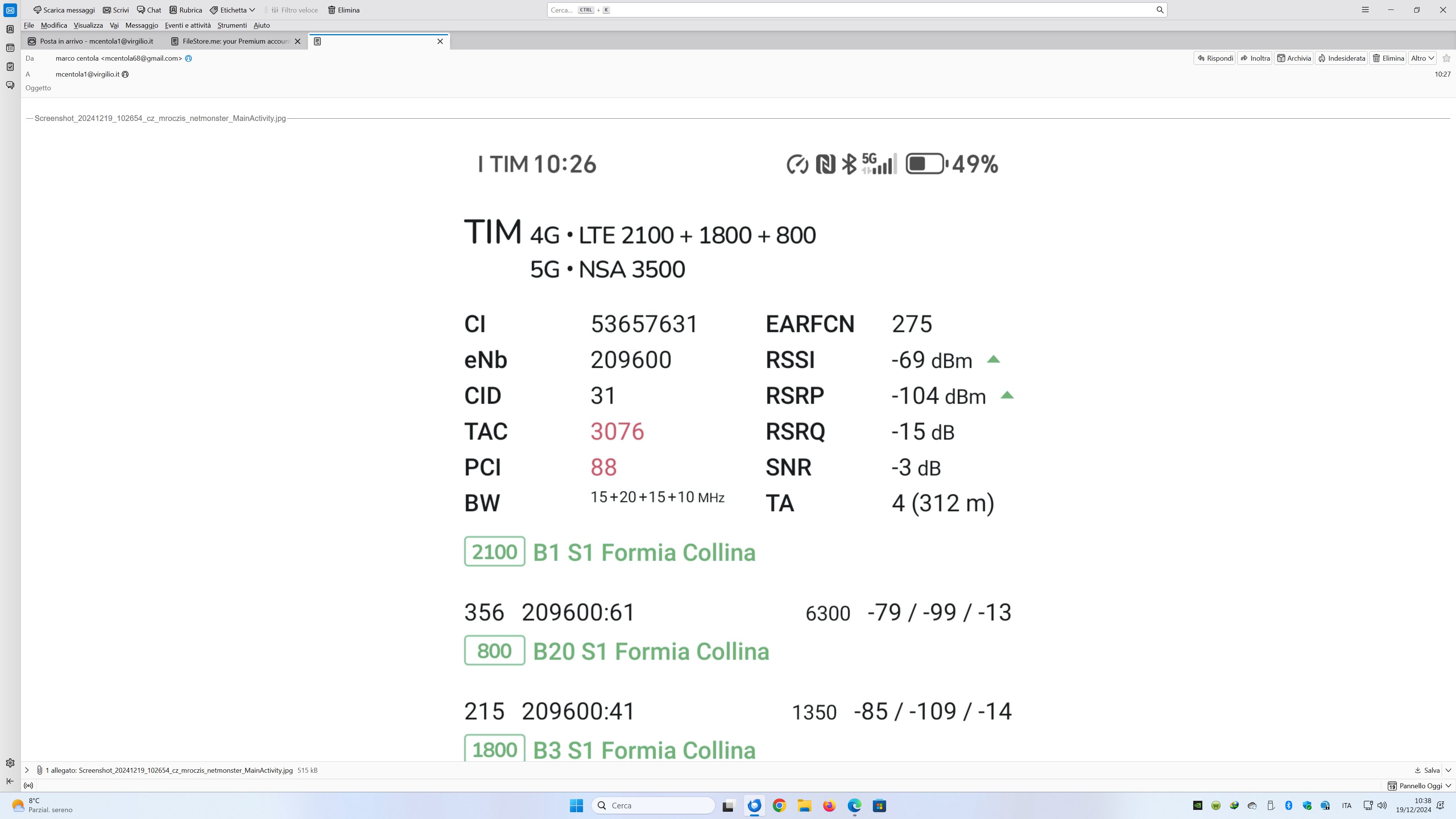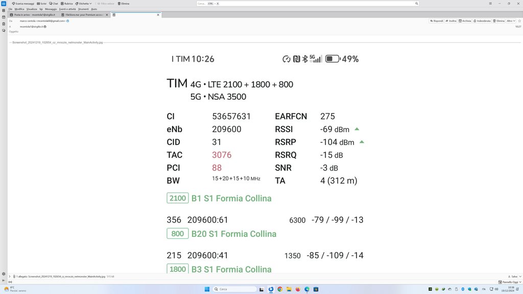 arizona86 scusate l'o.t. distante 300/400 metri in linea d'aria dal ripetitore di formia-collina ecco il 5G Ultra di Tim,mica si capisce che tipo di 5G si tratta, io da netmonster non capisco,,,