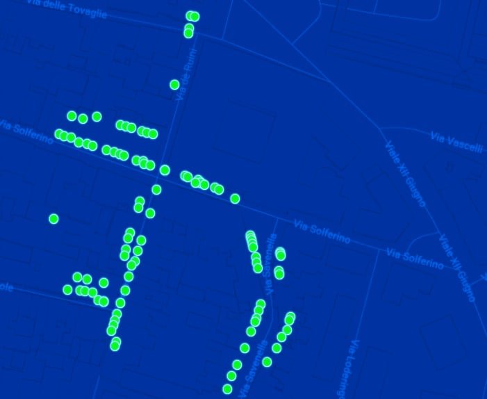 I pallini verdi sono i civici connessi e l'ultimo della via è proprio il 44/b. Da lì in poi basta.