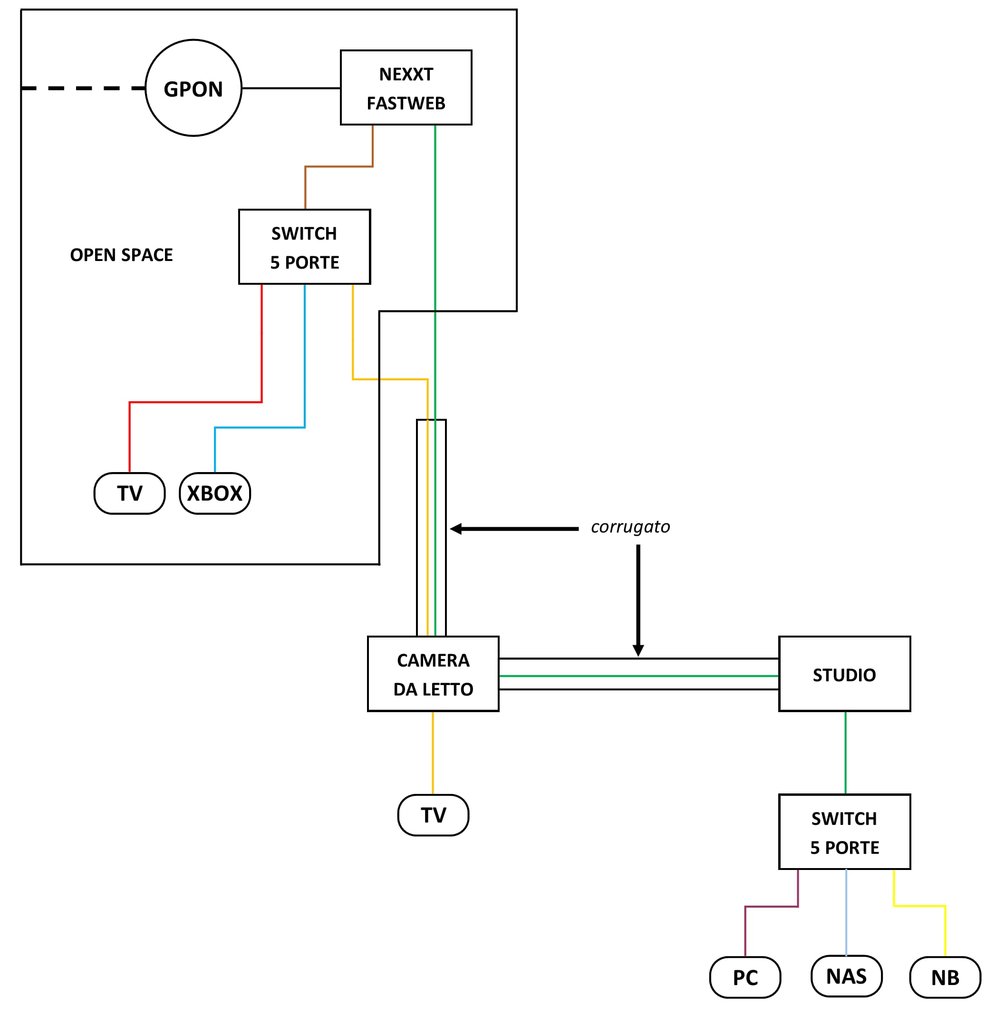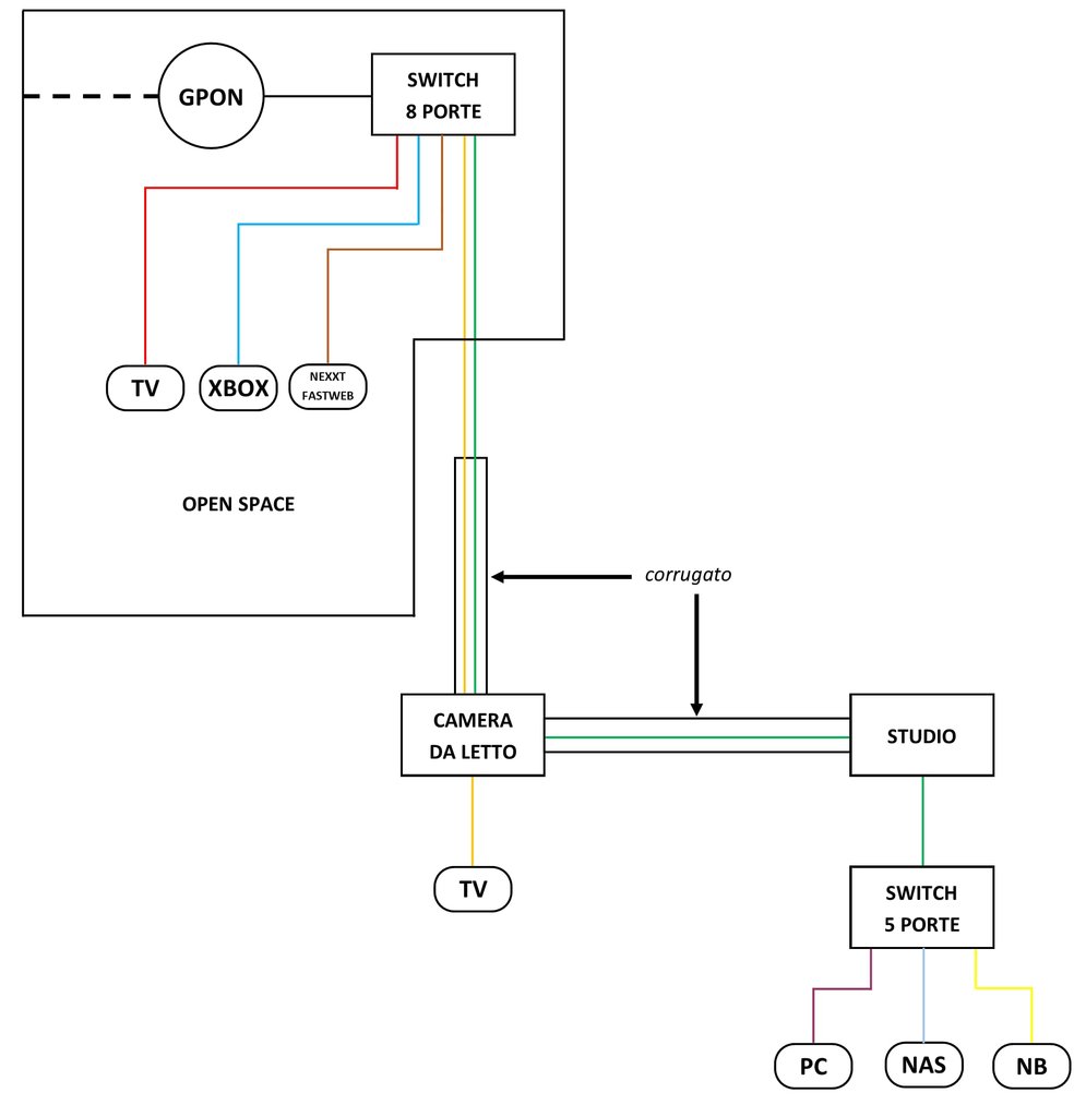 Quindi, per aumentare le capacità di cablaggio, ho bisogno di un ulteriore switch e vi chiedo: