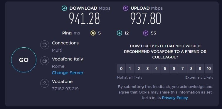 Il problema principale era questo: mentre con il router Vodafone in DMZ viaggiavo sui 1000/1000 (meno spicci, 940, 980, giù di lì) con quello TPLink andavo a circa 180/250.