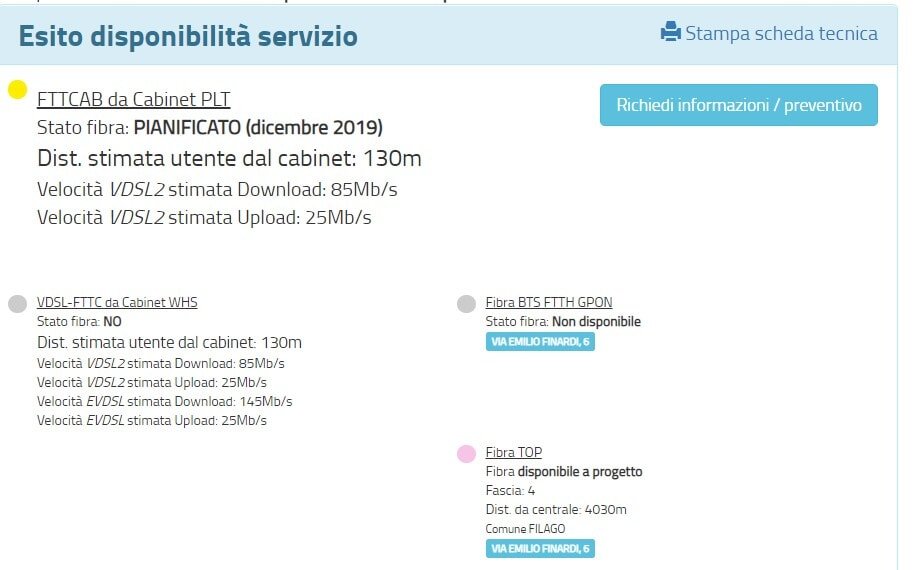 VDSL FTTC da Cabinet WHS indica la stessa cosa ma da ONU TIM, che si trova sopra il ripatilinea di TIM. Ma voi non c'è, c'è solo il ripartilinea. per questo non te la segna disponibile (bollino grigio)