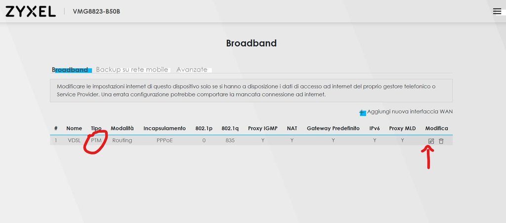 In corrispondenza della wan di tipo PTM seleziona modifica: