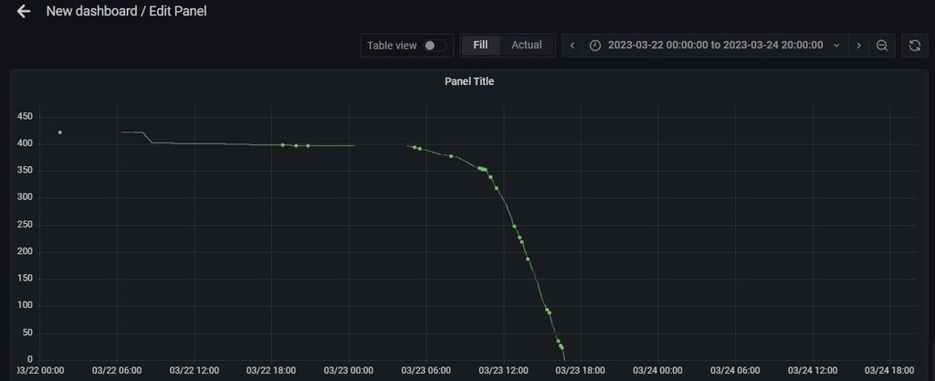 Con un automatismo (home assistant + node red + influxdb + grafana. Se vi interessa vi darò altri dettagli.) registro infatti dal sito http://contatori.vodafone.it/continua la quantità di mb che mi rimane ogni minuto.
