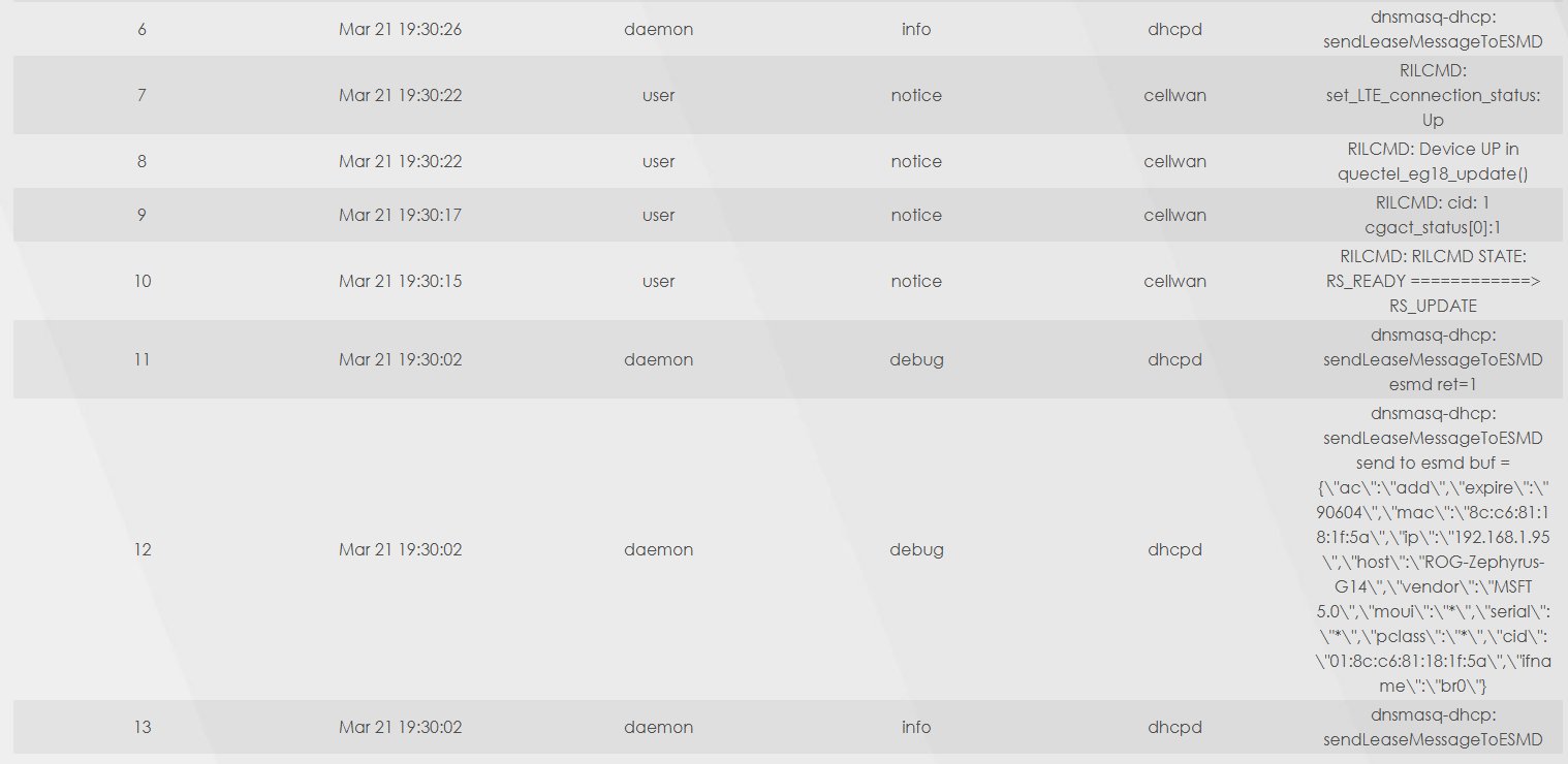 Wed Mar 12 21:05:00 2025 user.notice root: exec /root/wan2_connect: lost connection detected Thu Mar 13 09:03:01 2025 user.notice root: exec /root/wan2_connect: lost connection detected Thu Mar 13 21:01:01 2025 user.notice root: exec /root/wan2_connect: lost connection detected Fri Mar 14 09:00:00 2025 user.notice root: exec /root/wan2_connect: lost connection detected Fri Mar 14 20:56:01 2025 user.notice root: exec /root/wan2_connect: lost connection detected Sat Mar 15 08:51:01 2025 user.notice root: exec /root/wan2_connect: lost connection detected Sat Mar 15 20:51:01 2025 user.notice root: exec /root/wan2_connect: lost connection detected Sun Mar 16 08:46:01 2025 user.notice root: exec /root/wan2_connect: lost connection detected Sun Mar 16 20:45:01 2025 user.notice root: exec /root/wan2_connect: lost connection detected Mon Mar 17 08:45:01 2025 user.notice root: exec /root/wan2_connect: lost connection detected Mon Mar 17 20:40:01 2025 user.notice root: exec /root/wan2_connect: lost connection detected Tue Mar 18 08:36:00 2025 user.notice root: exec /root/wan2_connect: lost connection detected Tue Mar 18 20:31:00 2025 user.notice root: exec /root/wan2_connect: lost connection detected Wed Mar 19 08:30:01 2025 user.notice root: exec /root/wan2_connect: lost connection detected Wed Mar 19 20:26:00 2025 user.notice root: exec /root/wan2_connect: lost connection detected Thu Mar 20 11:46:01 2025 user.notice root: exec /root/wan2_connect: lost connection detected Thu Mar 20 23:45:00 2025 user.notice root: exec /root/wan2_connect: lost connection detected Fri Mar 21 11:40:00 2025 user.notice root: exec /root/wan2_connect: lost connection detected Fri Mar 21 23:39:01 2025 user.notice root: exec /root/wan2_connect: lost connection detected Sat Mar 22 11:36:00 2025 user.notice root: exec /root/wan2_connect: lost connection detected Sat Mar 22 23:33:01 2025 user.notice root: exec /root/wan2_connect: lost connection detected Sun Mar 23 11:31:01 2025 user.notice root: exec /root/wan2_connect: lost connection detected Sun Mar 23 23:30:00 2025 user.notice root: exec /root/wan2_connect: lost connection detected Mon Mar 24 11:25:01 2025 user.notice root: exec /root/wan2_connect: lost connection detected Mon Mar 24 23:21:01 2025 user.notice root: exec /root/wan2_connect: lost connection detected Tue Mar 25 11:21:00 2025 user.notice root: exec /root/wan2_connect: lost connection detected