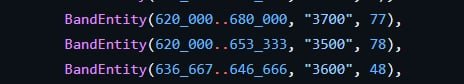 La Banda 78 va dai 3300 ai 3800 MHz, in questa pagina è stata ridotta e divisa per migliorare la leggibilità.