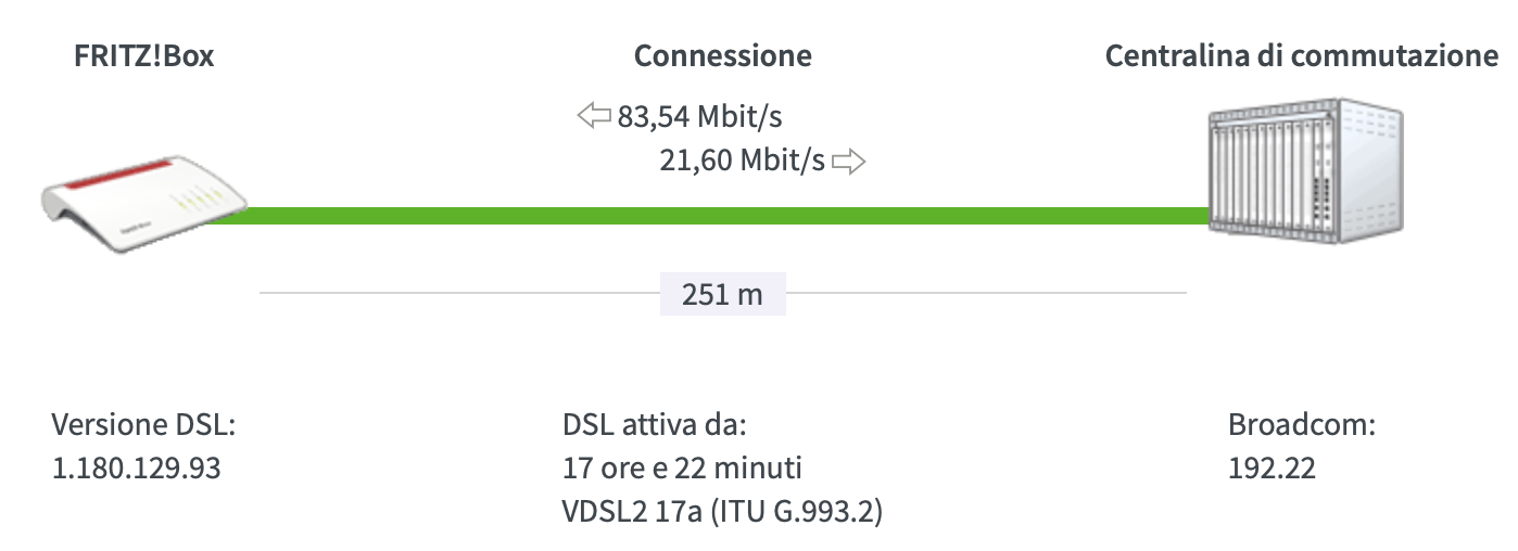Claudio7890 Hadx La linea è ovviamente molto lunga, indicativamente poco più di 1 chilometro. Sì, 1270 metri secondo il Fritz Box.