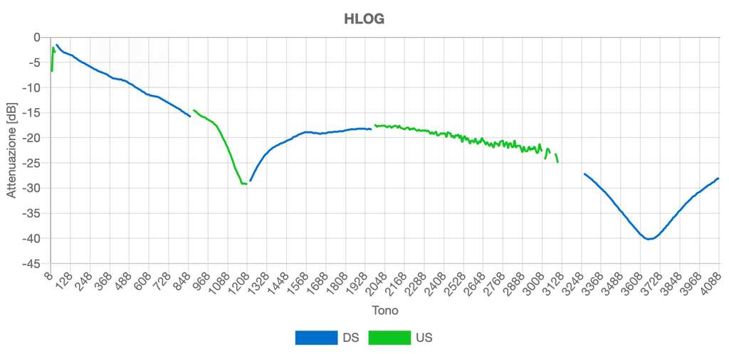 maverick464 Buongiorno, sono nuovo nel forum, ho letto la guida su come interpretare il grafico HLog ma ammetto di non averci capito granché; vi posto quindi i miei grafici per un'analisi sulla mia situazione. Premetto che: faccio parte di un condominio orizzontale di 7 unità di nuova costruzione, io ed il vicino abbiamo attivato TIM un anno fa in ADSL (17/1 Mbps), ad aprile sono passato a FTTC ed avevo 104/20 Mbps, da un mesetto sono sceso a 83/20 Mbps. forse diafonia, visto che anche il vicino ha chiesto l'upgrade a FTTC? ho delle derivazioni? c'è modo di aumentare nuovamente il download? s chiedessi a TIM di cambiarmi profilo in 35b, vedrei dei miglioramenti? è uno switch gratuito o a pagamento? Grazie mille