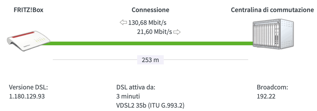 Claudio7890 Hadx La linea è ovviamente molto lunga, indicativamente poco più di 1 chilometro. Sì, 1270 metri secondo il Fritz Box.
