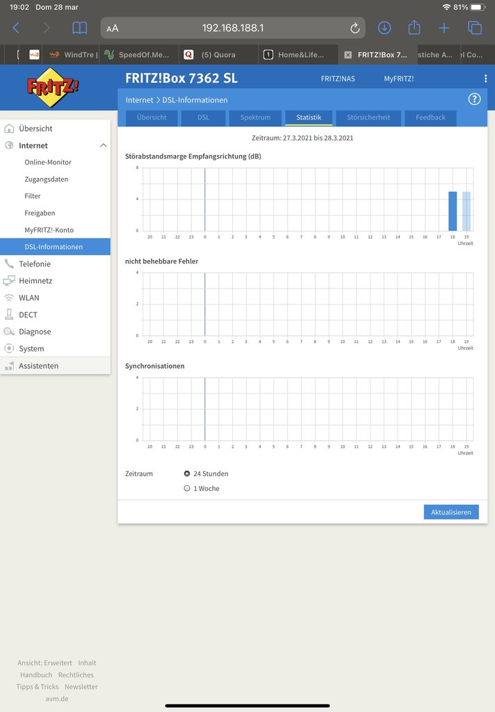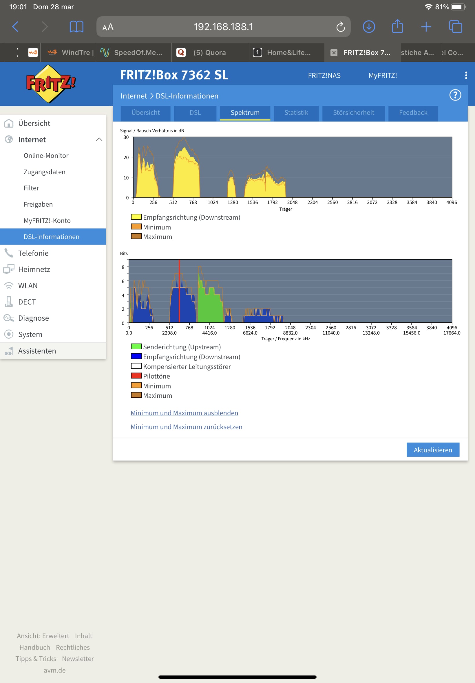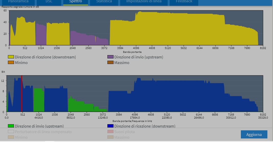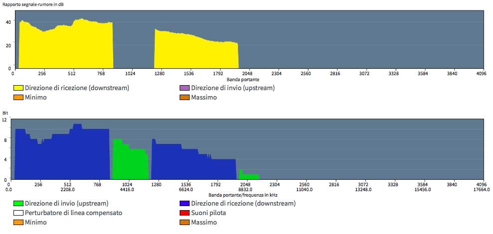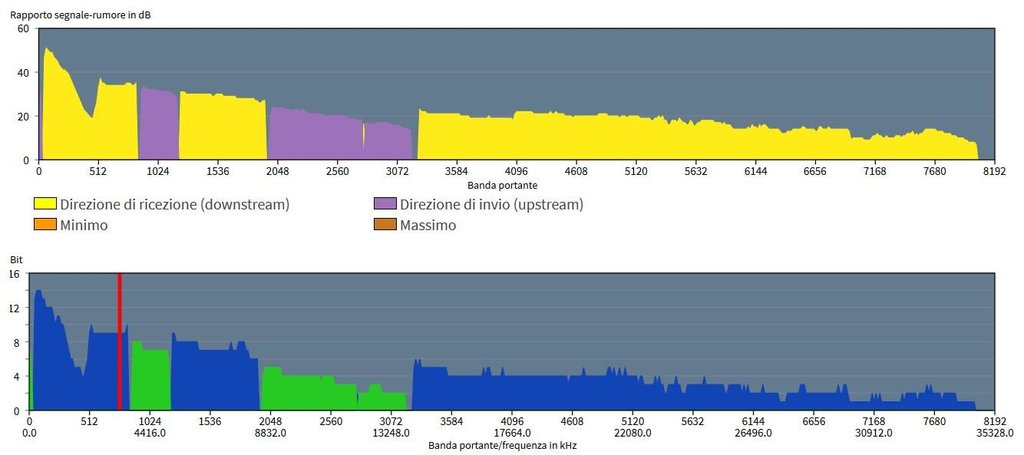Micro33 Purtroppo non avendo i grafici vecchi è impossibile dire con certezza, i parametri sono rimasti simili, quindi siccome hai rumore medio-alto, ipotizzo diafonia per nuove attivazioni. Hai l'adattamento della velocità attivo, quindi potresti vedere la velocità cambiare a seconda delle condizioni della linea.