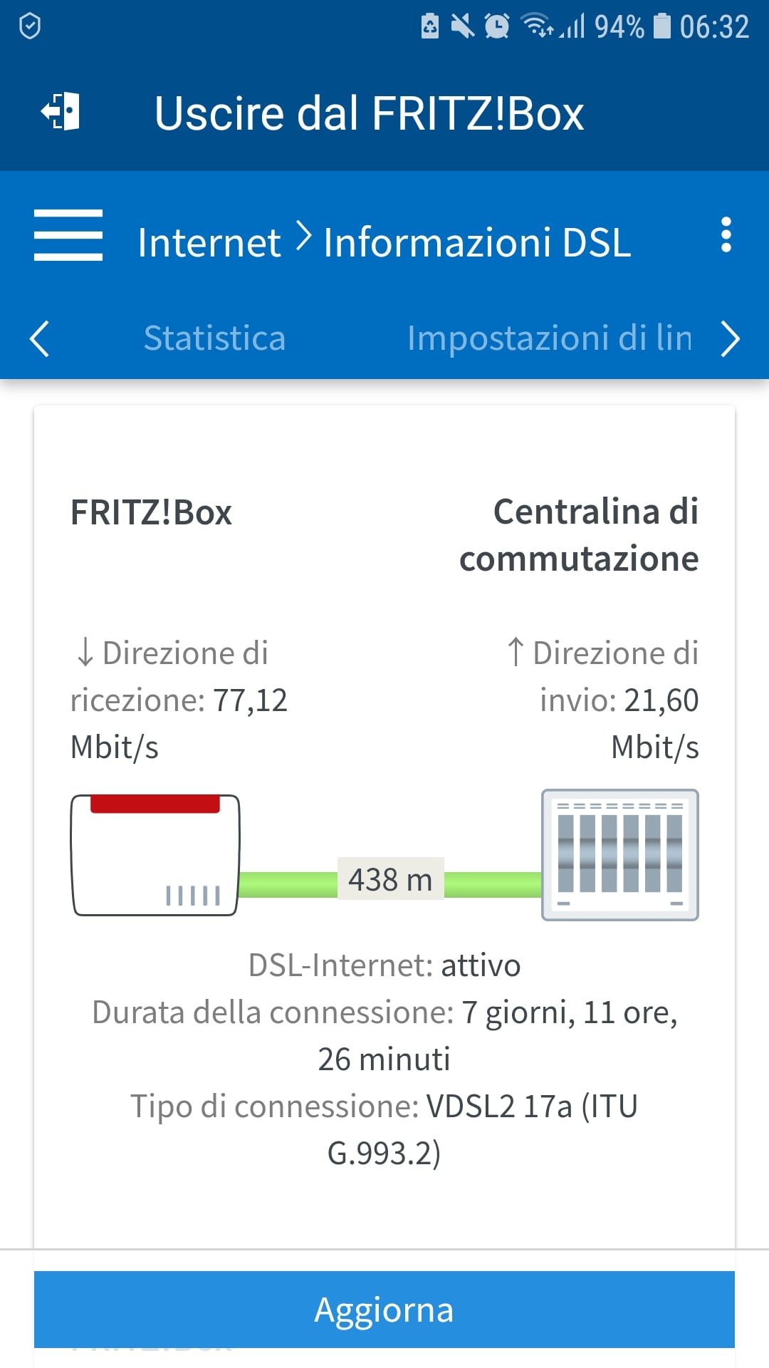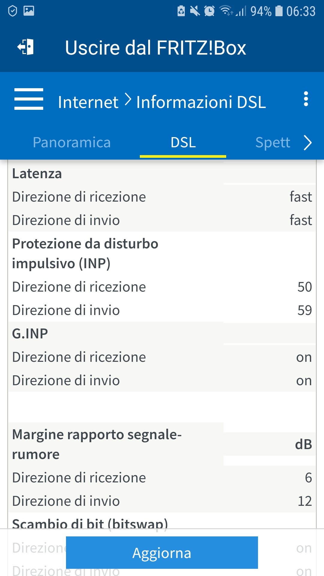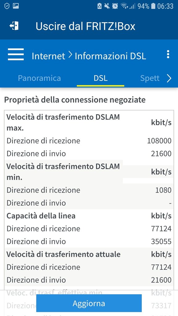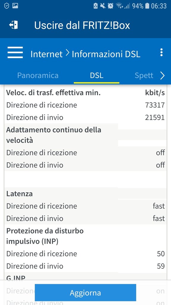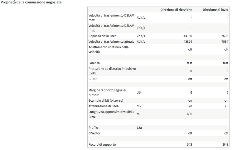 bergamo1907 Linea buona, nessuna derivata diafonia media sulle frequenza del 17a, bassa sul 35b. La tua velocità potrà scendere a mano a mano che i vicini chiederanno il passaggio dalla 100 alla 200. Non riavviare troppe volte il modem, ti hanno già messo profilo SOS, chiedi al 187 tasto 2 che ti mettano il profilo i2012_1008 (lo fanno lì per lì, non far aprire segnalazioni, se non è capace saluta e richiama)