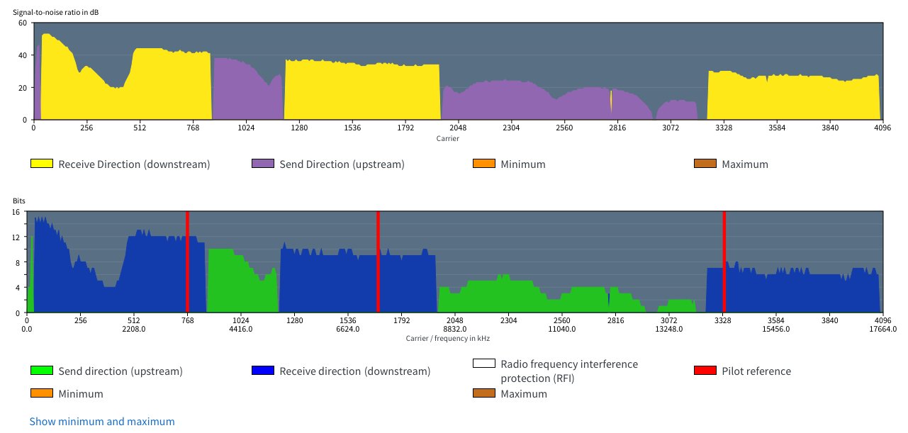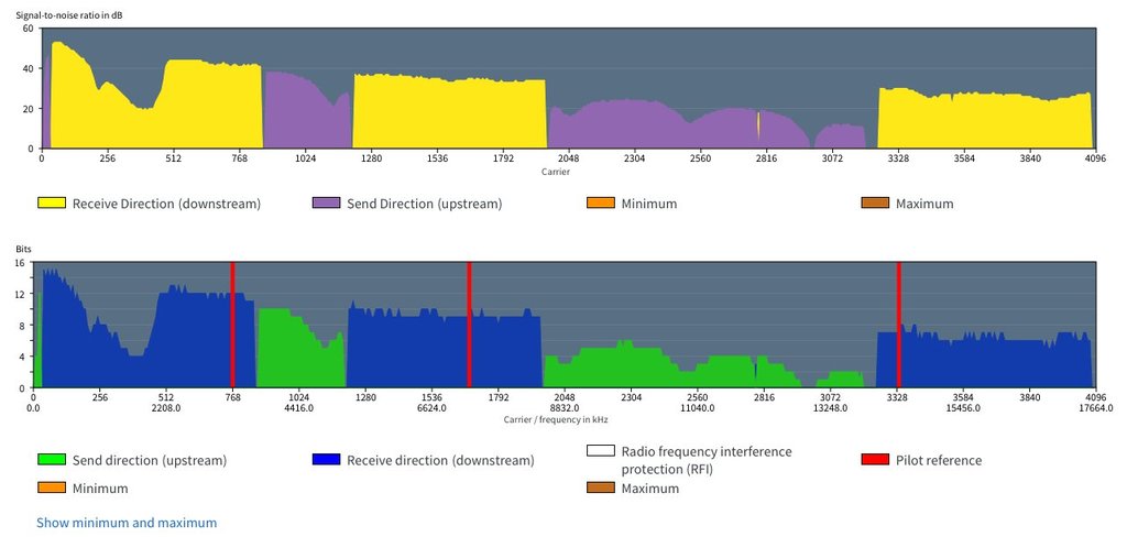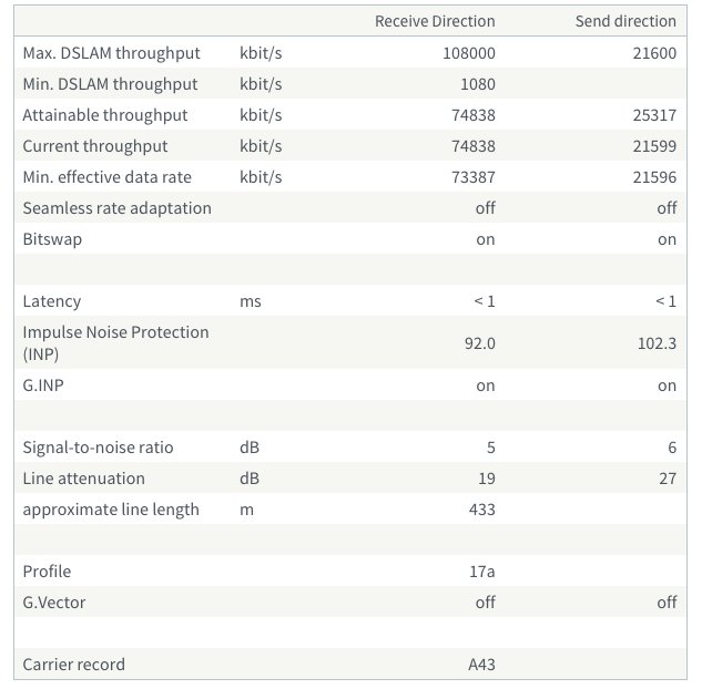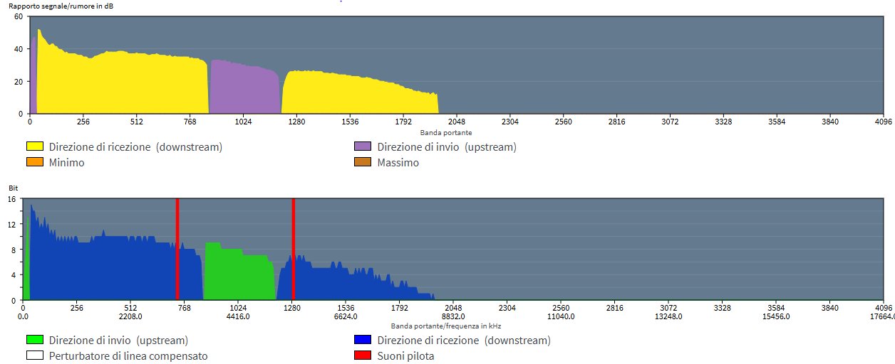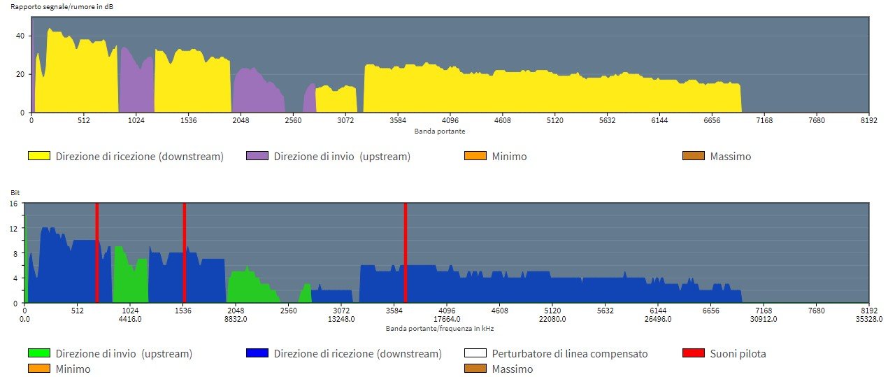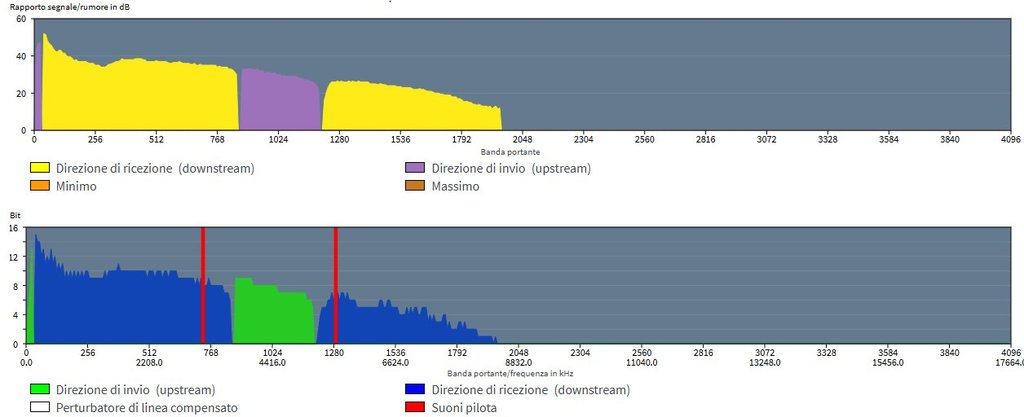 Ecco le statistiche dell'ultima settimana, le sincronizzazioni sono dovute al fatto che ho staccato il cavo per fare delle prove con un altro router, quello di Poste, che aggancia anche 20 mega in meno. Adesso il Fritz vede una linea lunga circa 450 metri, la portante varia tra i 90 ed 100 mega, dipende dai momenti. I 130 mila DTU non corretti si sono verificati quando non c'era nessuno in casa. Credo proprio che ci sia qualche problema o nella chiostrina oppure nell'armadio di zona.