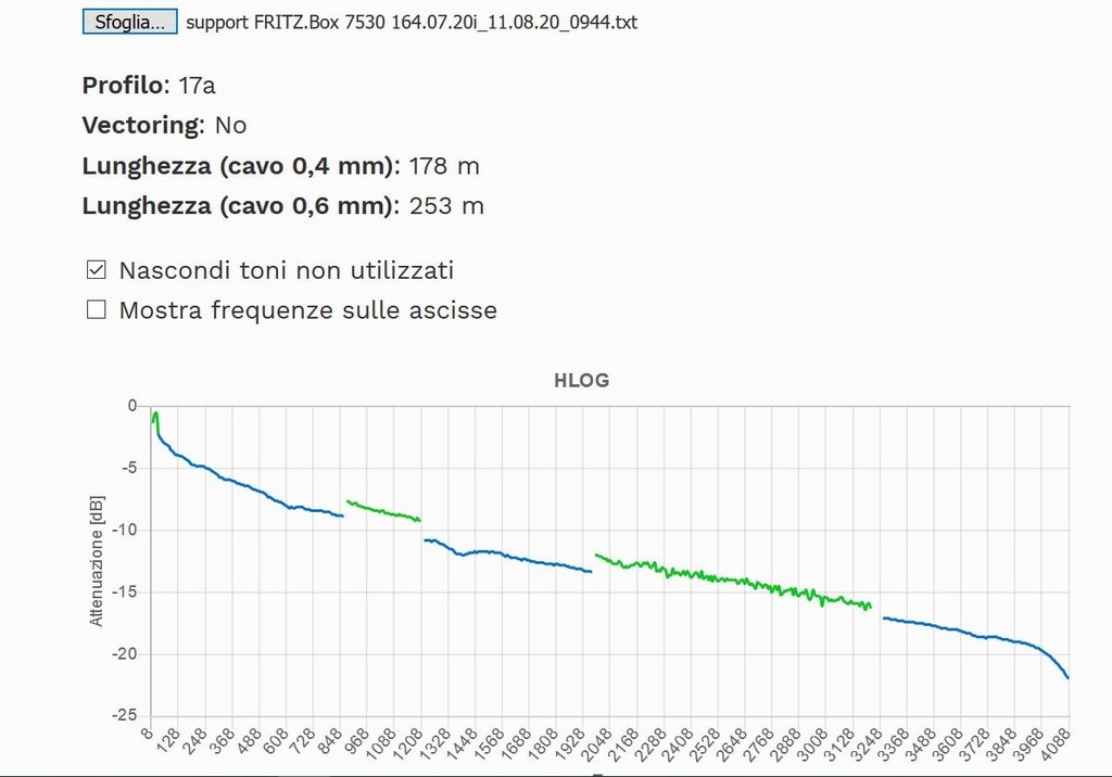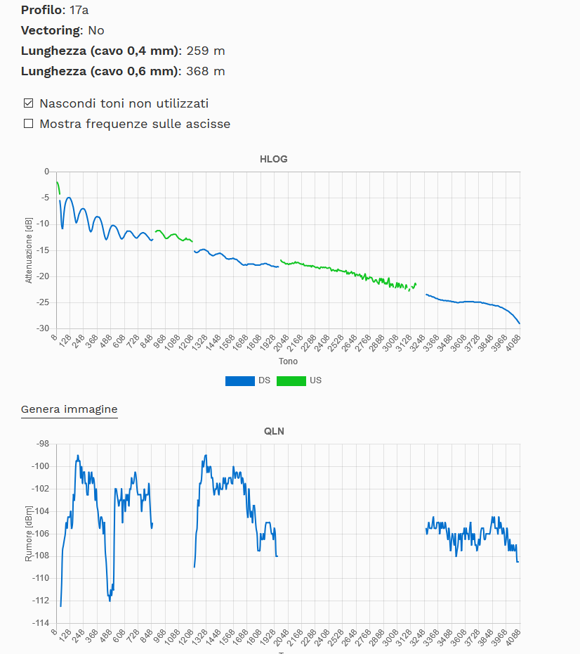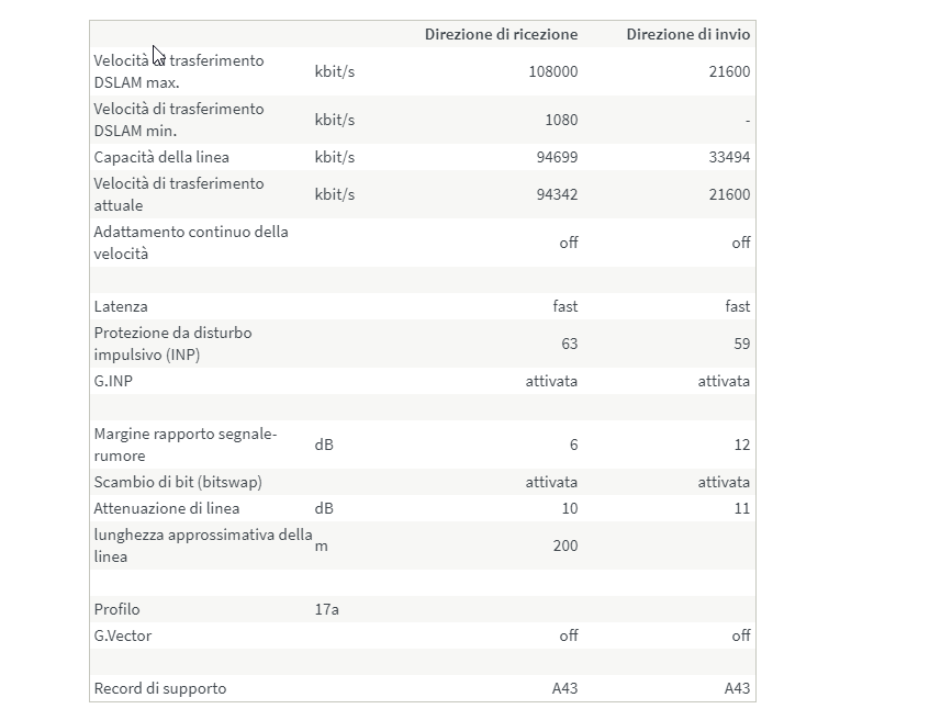 Ho una linea linea Tiscali in FTTC distante 480 metri da Cabinet. Noto che la linea non è stabile, e spesso i valori di download e upload variano sensibilmente. In genere ogni 4/6 mesi devo richiedere interventi sulla linea perché le prestazioni spesso risultano essere più che dimezzate.