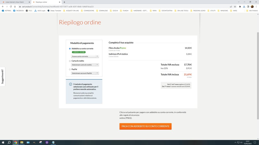 Alla fine ho fatto il salto : il 15/05/2023 ho fatto l'ordine ad Aruba ed oggi, dopo 5 giorni