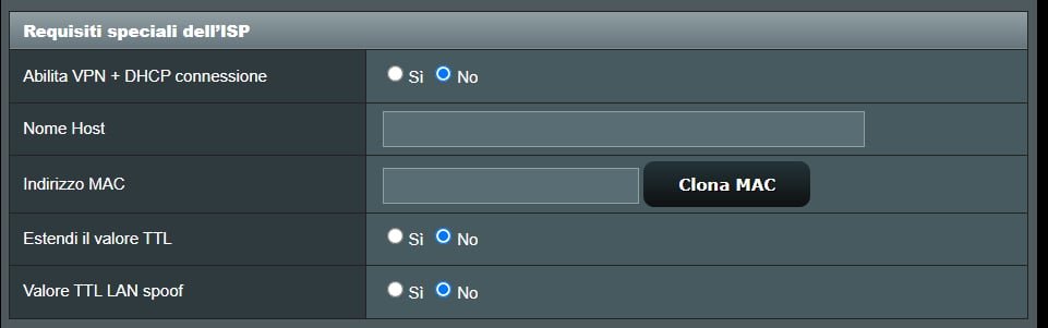 e disabilitato la voce "abilita VPN+DHCP connessione"