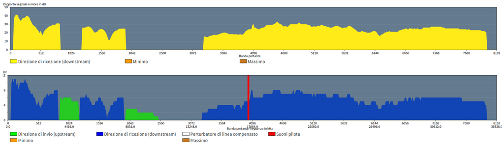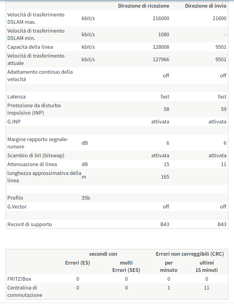 Stasera ho scollegato lo Zyxel e collegato il Fritz 7530, la situazione pare piu' o meno simile, anzi, velocita' leggermente piu' basse. ( Ho visto che lo Zyxel si connette con Annex B, mentre il 7530 di default su Tiscali usa A. L' ho modificato manualmente a B, ma non ho visto grossi cambiamenti.