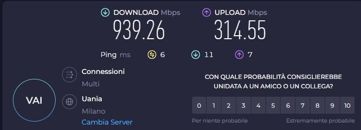 6)Installato il router, FRITZ!OS: 07.29-94069 PLUS versione firmware e primo speed test, non capisco perchè l'upload sia a 300 e non a 500. Capisco per ragioni ovvie che vada a 1gigabit il download ma non capisco l'upload. a sto punto tanto valeva la promo della 1gigabit e 300 mega e risparmiavo pure soldi. bah - Contattato il servizio tecnico, dicono di attendere qualche giorno di assestamento...