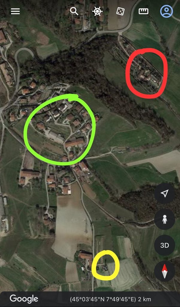 Cercando le BTS su LTE ho trovato quella più vicina (Cerchio giallo), 700/800m in linea d’aria.