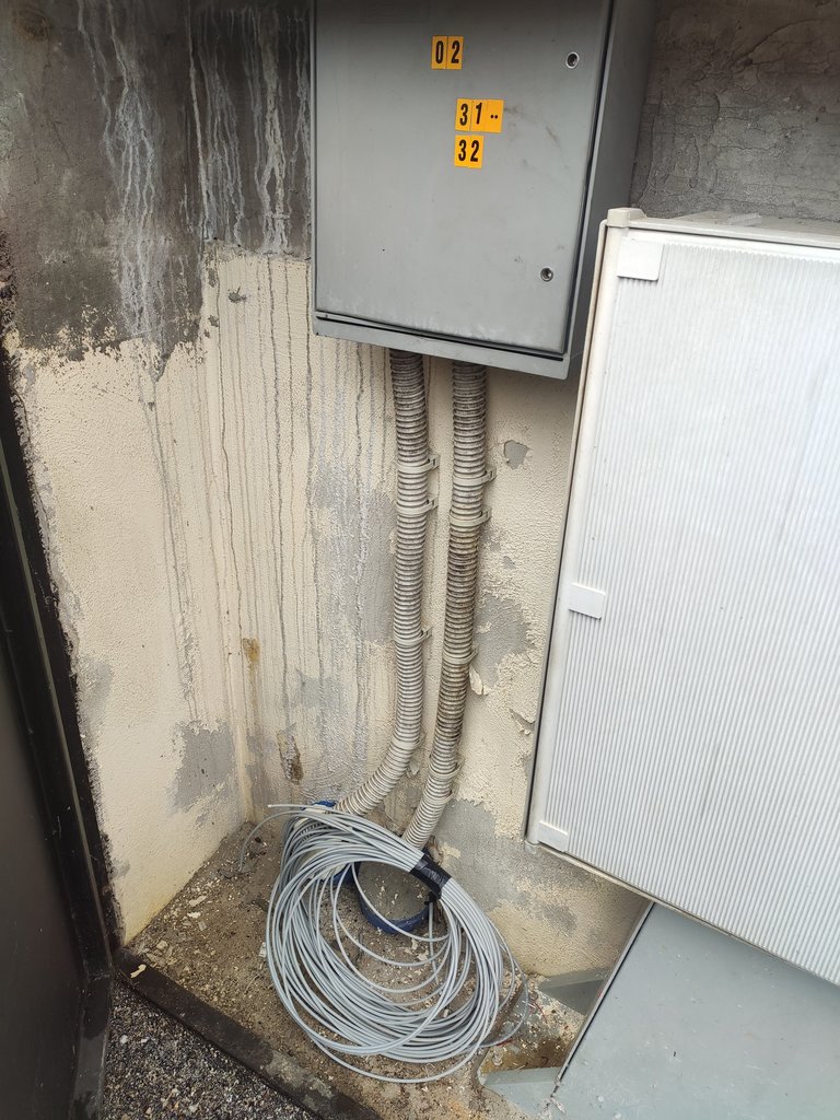 La palazzina è composta da 6 appartamenti. Ieri i tecnici hanno portato dalla chiostrina alla palazzina 3 cavi e hanno installato questo: