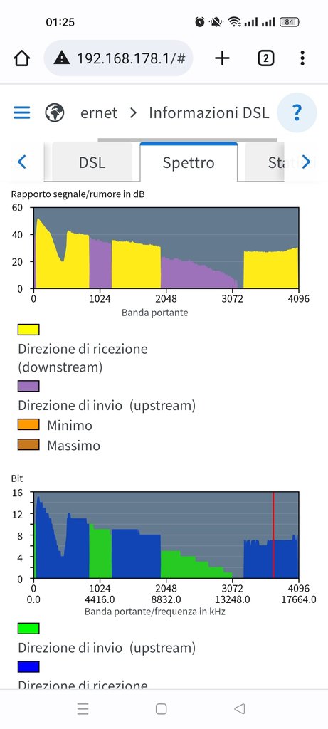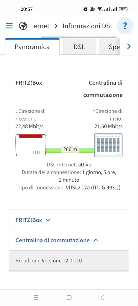 Ho un contratto Vdsl2 100/20 , operatore Convergenze, da novembre 2022. Sono possessore di due modem-router, tali Tp-link vx220-g2v (ultimo firmware) e Fritz box 7590ax V2 (7.50). Ho cominciato che avevo solo il primo citato ed al primo aggancio risultava 78/20. Dopo neanche un mese è calata a 70. Provato a cambiare modem, ma neanche col Fritz sale a più di 72.