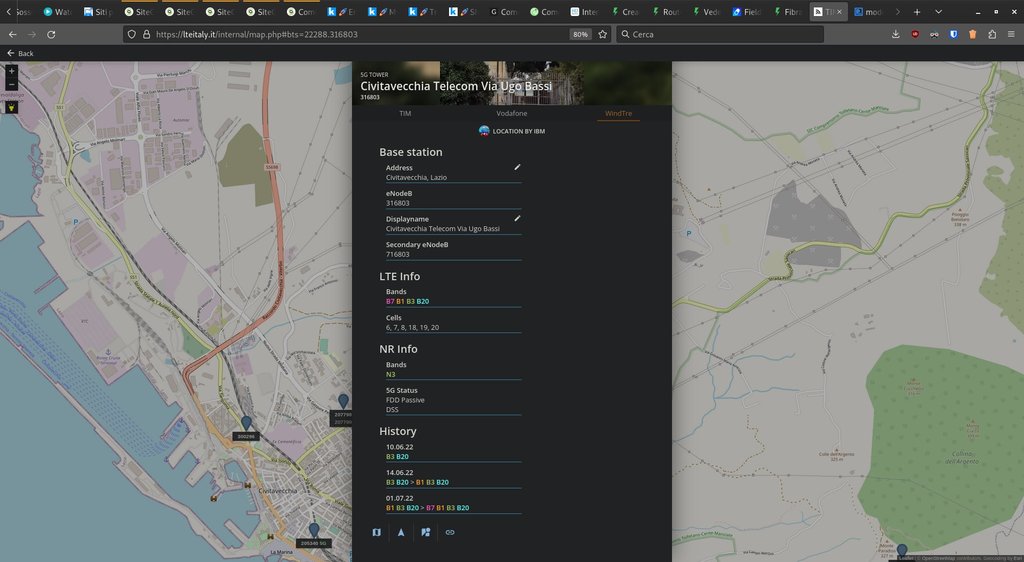 Ho sondato i vari provider per un contratto FWA e ho copertura solo con wind e linkem (di seguito la terza BTS un pò più distante con Tim, Vodafone e Wind)