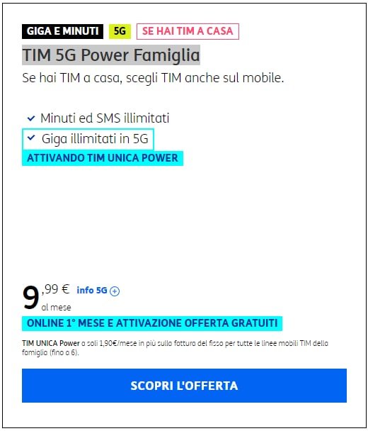 Navigando sul sito ho visto TIM 5G Power Famiglia che da: