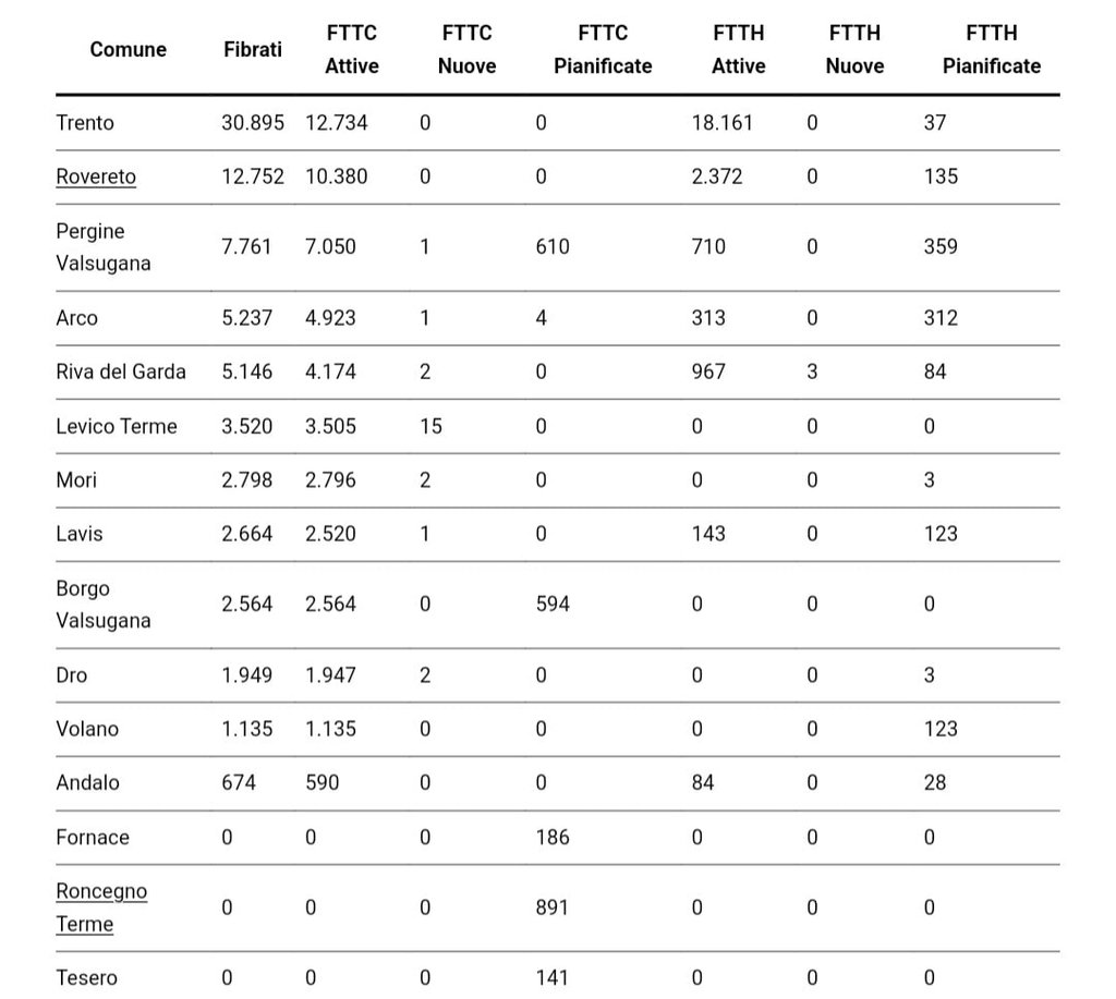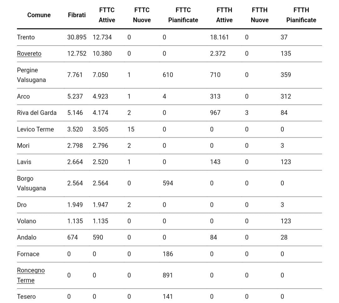Ad esempio civici fibrati = civici raggiunti da FTTC + FTTH.