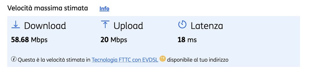 Salve a tutti, da qualche giorno mi è stata installata la fibra fttc tim (con pacchetto voce)... il problema è la velocità: siamo sui 15 mbps in download e a malapena raggiunge i 3 in upload. A cosa potrebbe essere dovuta questa lentezza?