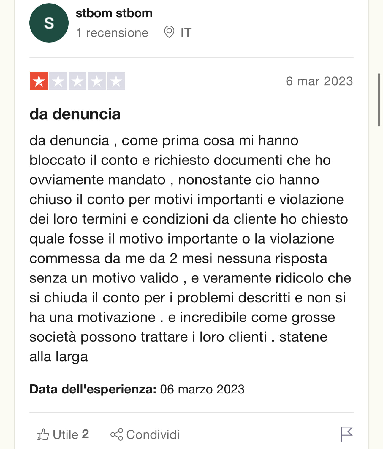 A qualcuno di voi è mai capitata una cosa simile con questi? Su trustpilot leggo che a molte persone capita lo stesso che blocchino senza un motivo. No sense.