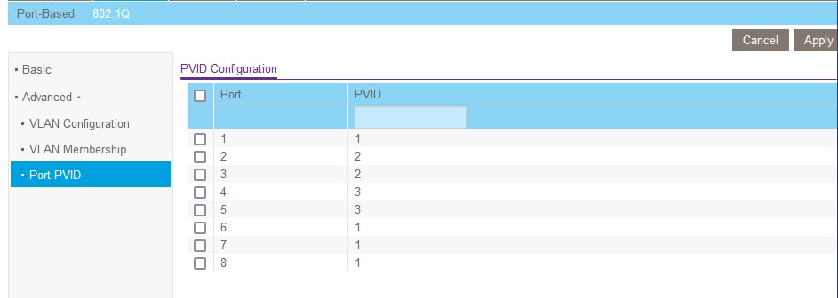 Nella prima schermata mostra come sono assegnata le porte in base al tag VLAN selezionato in VLAN ID. In questo caso si vede che tutte le porte sono assegnate "U" - cioè "Untagged" alla VLAN 1. Di solito la VLAN 1 è considerata la "default VLAN", esiste sempre e le porte sono associate automaticamente come untagged. Quindi se non assegnate esplicitamente ad altre VLAN, sono assegnate a questa. Se selezione le altre VLAN si vede l'assegnazione delle porte.