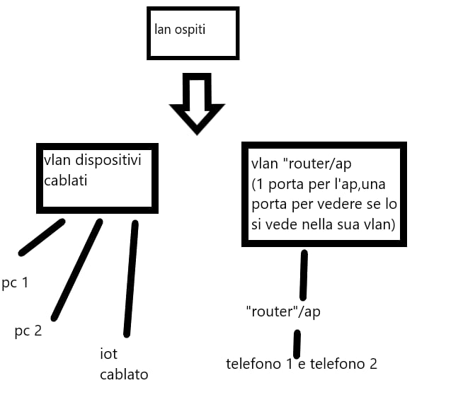 Nel tuo caso, ipotizzando di avere un router internet e 4 dispositivi su due VLAN diverse, in genere la configurazione è porte untagged per i dispositivi assegnate alle rispettive VLAN, e una porta tagged invece per il router così che il router può ricevere e inviare pacchetti per tutte le VLAN assegnate. In questo caso però l'interfaccia Ethenet del router (o di altro dispositivo connesso) deve essere in grado di ricevere e inviare i pacchetti tagged e gestire quindi le VLAN. Se non è in grado, non potrà funzionare.