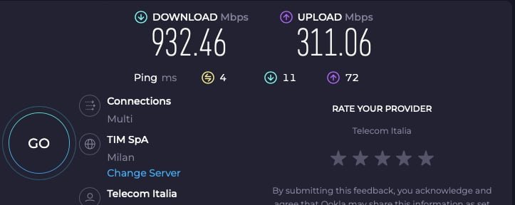 Ho fatto alcuni test con la 1Gbps di TIM:
