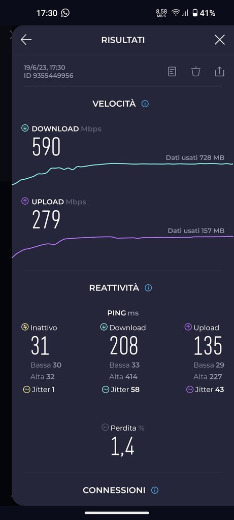 Poi una volta fatti i test, prendi il link dello speedtest dall'app Ookla e lo pubblichi qua, così possiamo analizzare meglio. Dicci anche che server usi nella descrizione di ogni link speedtest, grazie.