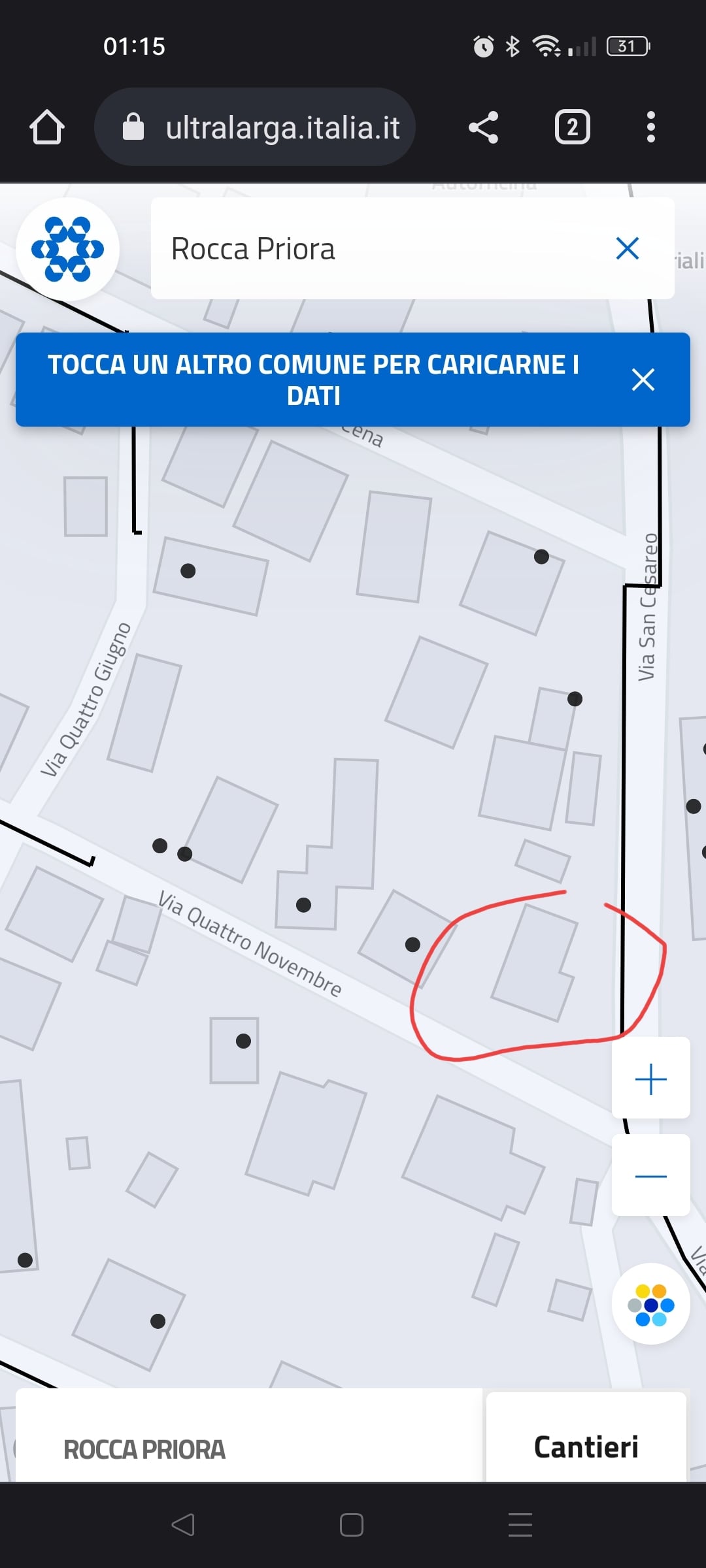 andreagdipaolo massimo_vp Scusa se mi impiccio: tu sei coperto, giusto? La rete è predisposta ma secondo me non è ancora allacciabile perchè probabilmente fa capo a un PCN diverso da quello che copre il centro abitato principale, dall'altra parte del bosco. Non si spiega altrimenti come mai OF non lo dichiara coperto. Secondo me farà capo al PCN di Palestrina, che ancora non esiste perchè la zona è piena di minipcn. @MarcoBellezza