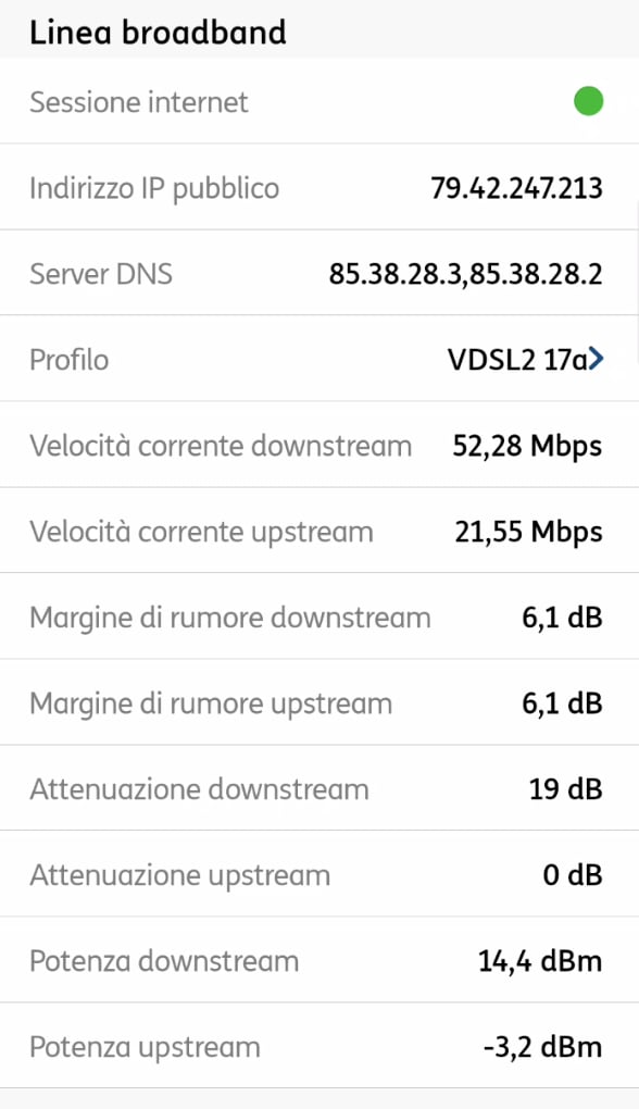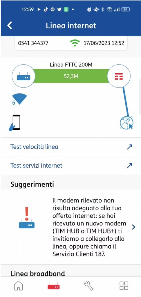 Da circa 2 anni ho attiva la 200M TIM, ma non ho mai cambiato il modem bianco di TIM che supporta solo il profilo 17a, come indicato sull'app TIM Modem.