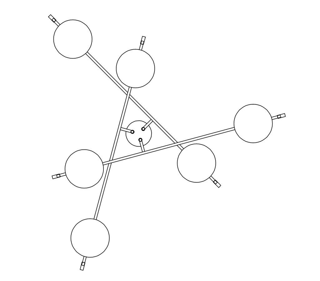 Le lampadine che monta sono delle Philips Hue (che non ronzano), però a parte questo non ci sono altri trasformatori: solo cavi dal soffitto ai vari bracci.