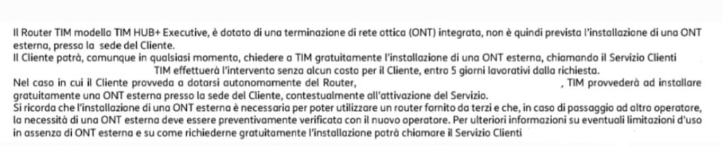 Il contratto TIM veniva con il modem TIM e la fibra e collegata all'interno del modem utilizzando un cavo ottico SFP (o sfp+ non ricordo).