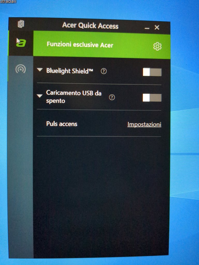 edd Fatto, devi andare sul sito Acer e scaricare dalla sezione Driver e Manuali un applicazione relativa alla impostazioni aggiuntive Acer.