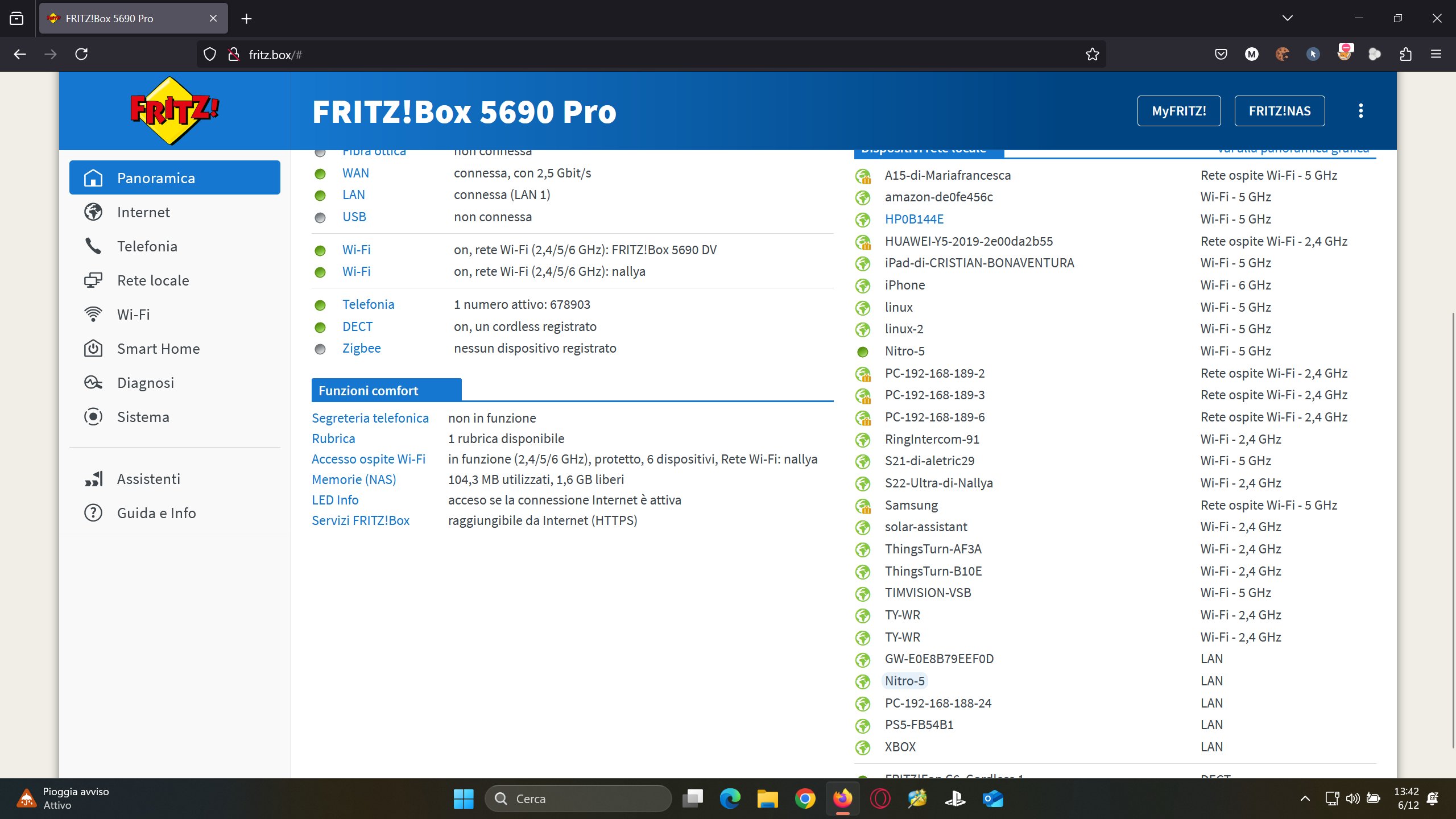NinjaTito nel frattempo di rimandare indietro il 5690 pro, lo massacro un pò, vediamo quanti dispositivi regge, voglio vedere se via wifi si può sfruttare i 2,5 gb/s ok , dopo un paio di ore di test, con 32 dispositivi connessi per un paio di volte il fritz ha perso la connessione scollegandomi da internet, bocciato
