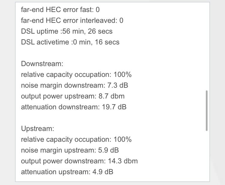 Ho un profilo 100/20 ma riscontro continui sbalzi SNR (con conseguenti rinegoziazioni di portante per via dell’SRA) e aumenti stratosferici di errori CRC (soprattutto in downstream). Ne consegue inoltre che le portanti rinegoziate siano a velocità più basse (anche nell’ordine di 10/15 Mbps rispetto ai 40Mbps che aggancio “quando tutto funziona”).