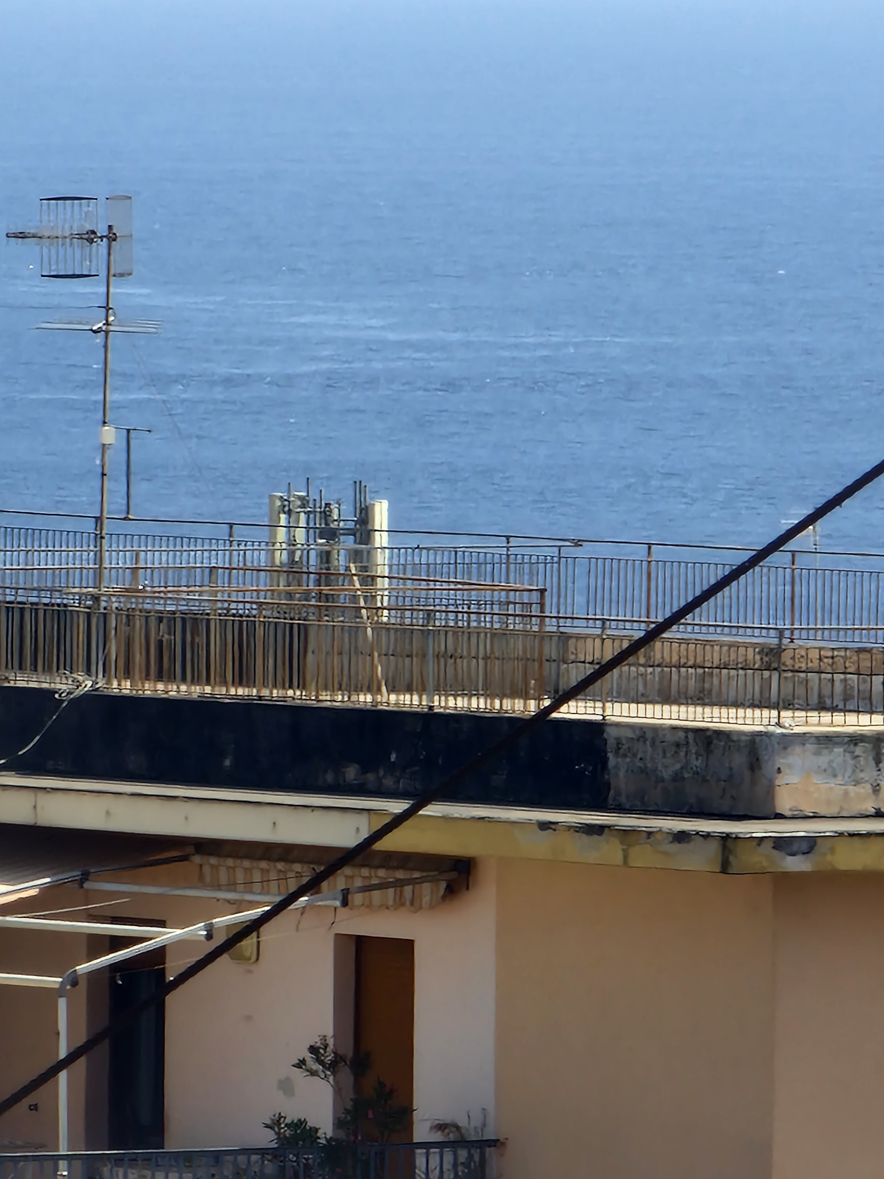 La BTS con gli apparati Fastweb invece è quella in blu che come vedi è esattamente dietro, in linea d'aria, a quella rossa che essendo rialzata di un piano ne copre la visuale.
