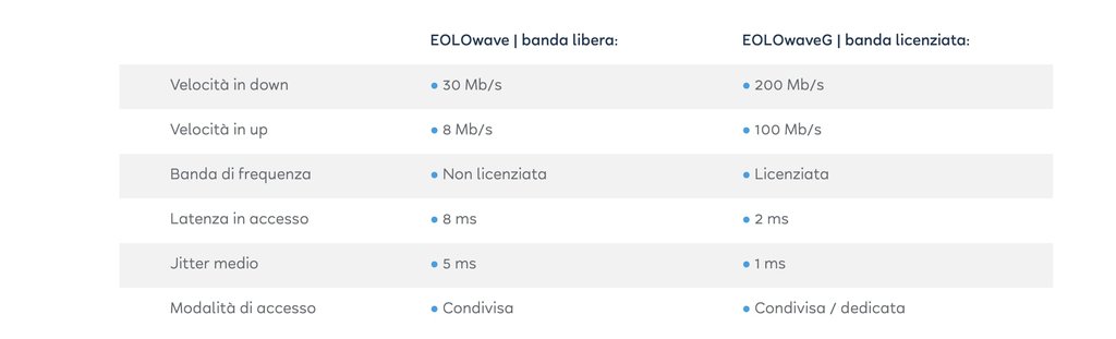 Allego lo screen delle specifiche tecniche preso direttamente dal sito di Eolo.