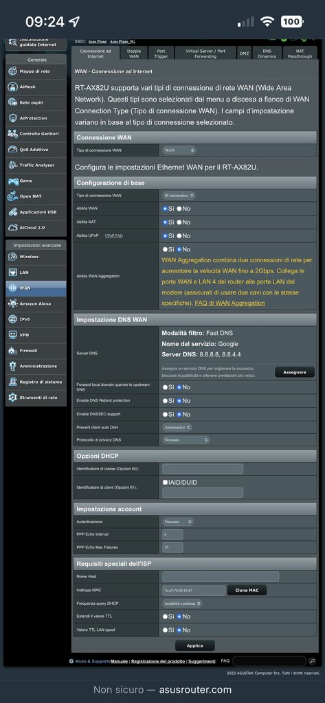 Se sei in failover mode, potrebbe accadere che ASUS confonda lo stato delle connessioni, facendo bouncing indefiniti tra le due.