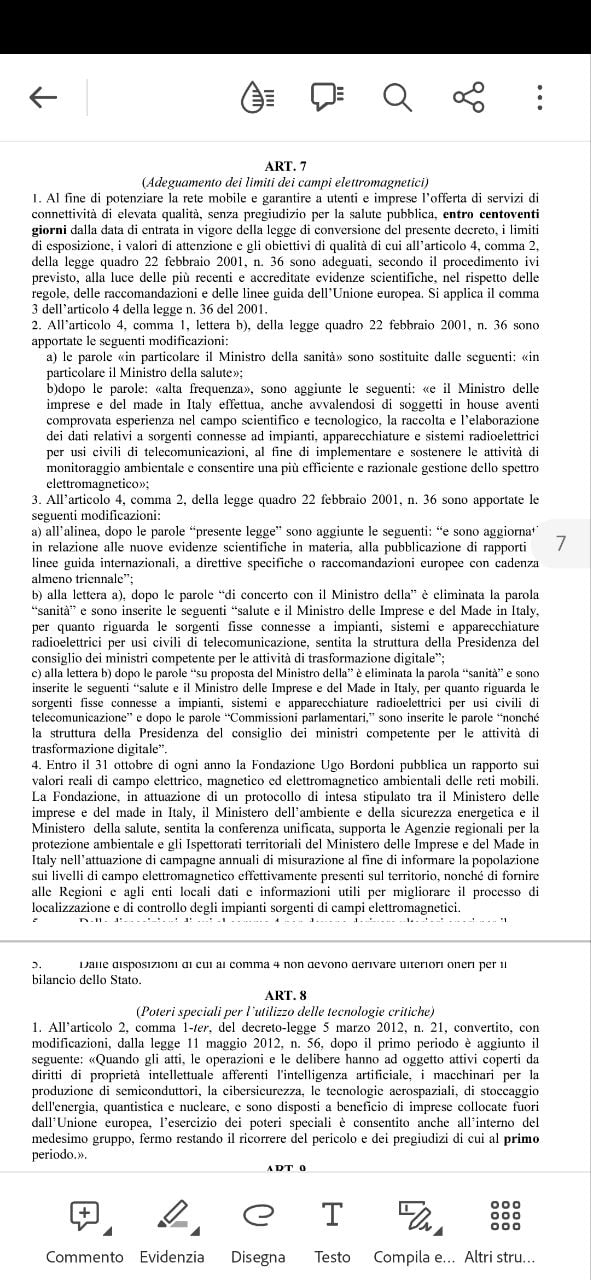 ribadisco e' solo un banale e sicuramente molto approssimativo esempio, ma e' quello che succede in altri paesi. sono stato in Francia, in UK, e fuori da UE in Giappone, e ti assicuro che con i loro limiti (Francia e UK a 61V/m) il 5G prende praticamente ovunque, anche in campagna, e con ottime velocita'. e non ho visto zombie...