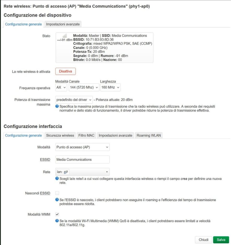Do per scontato che stia usando OpenWRT, visto che il firmware originale arriva fino al canale 64